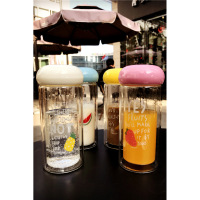 创意透明双层隔热带杯盖水果玻璃水瓶简约便携学生情侣随手水杯子
