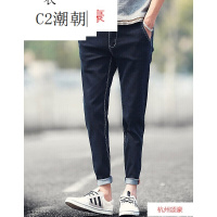 牛仔裤男青少年初中生九分裤运动哈伦裤小脚弹力男装黑色普通款