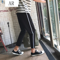 休闲裤男韩版宽松嘻哈运动哈伦裤青少年个性条纹九分裤王俊凯同款学生黑色小脚裤子黑色