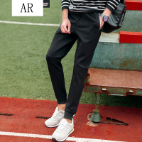 AR秋季新款束脚休闲裤男青少年运动裤个性时尚弹力大码男士哈伦裤潮流黑色