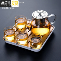 三维工匠透明玻璃茶具套装家用功夫茶杯过滤茶壶简约办公室用小套整套 400不锈(4透明/把杯)套装_小四方(条白+赠品