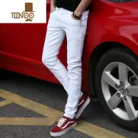 YANXU白色破洞裤男夏季薄款韩版潮流修身小脚休闲长裤子弹力牛仔白裤子