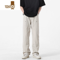 YANXU美式复古伐木裤男夏季高街潮牌宽松直筒长裤休闲百搭侧拉链牛仔裤