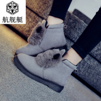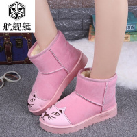 2017新款女加厚短筒猫咪雪地靴女冬季新款棉靴绒面平底学生二棉鞋