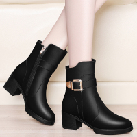 中筒靴女粗跟高跟短靴春秋英伦风马丁靴2017秋季新款靴子韩版百搭