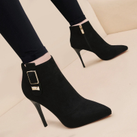 高跟鞋短靴女秋2017新款细跟百搭靴子女冬防水台女靴女鞋加绒棉鞋