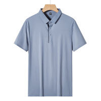 啄木鸟夏季冰丝款套装男士无痕T恤短袖POLO+休闲裤子男两件装父亲