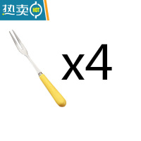 敬平水果叉套装不锈钢水果叉水果签甜品叉小叉子儿童餐叉蛋糕叉 4支黄色