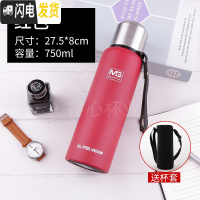 三维工匠不锈钢保温水壶男士户外大容量750旅游登山健身便携运动水杯子 红色750赠杯刷杯套双狮27号保温杯