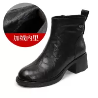 轻奢真羊皮马丁靴女新款秋冬黑色靴子复古厚底粗跟法式短靴女