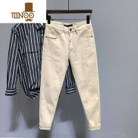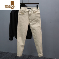 YANXU款卡其色牛仔裤男潮牌百搭修身九分裤子青年韩版简约休闲长裤