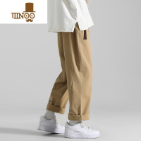 YANXU卡其色裤子男款宽松工装裤韩版潮流九分裤直筒阔腿休闲长裤