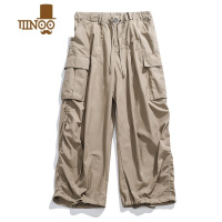 YANXURICHMAN卡其色日系宽松阔腿工装裤子男潮牌美式复古束脚休闲长裤