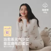 女士A类纯棉秋衣秋裤甜美可爱薄款磨毛印花圆领少女学生打底套装