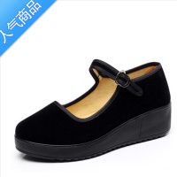 SUNTEK厚底松糕老北京布鞋女坡跟中高跟防滑舞蹈鞋酒店工作鞋黑妈妈单鞋