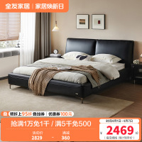 全友家居 意式头层牛皮真皮床极简风主卧室双人高脚大床