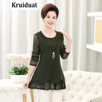 Kruidvat春季妈妈装时尚圆领长袖T恤长款蕾丝打底衫Z012
