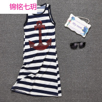 锦铭七玥2017欧美夏季新款母女装 间条亮片图案吊带背心连衣裙代发