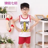 锦铭七玥虎门童装厂盾牌图案童套装561款 夏季新款白色童背心套装家直销