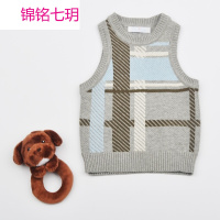 锦铭七玥2017年春款儿童x背心纯棉针织背心穿插图案套头男童背心欧美品质