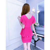 2017新款夏天夜店女装显瘦v领荷叶边飞飞袖修身性感OL气质连衣裙