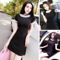 2017新款修身包臀显瘦夜店女装圆领花边拼接短袖性感大码连衣裙夏