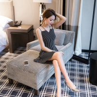 吊带裙女夏新款夜店性感夜店女装显瘦露肩背小心机黑色条纹连衣裙