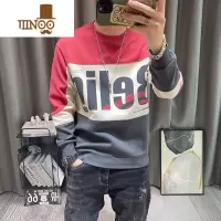 YANXU长袖卫衣男新款男士字母印花拼接高端男装圆领打底衫上衣外套