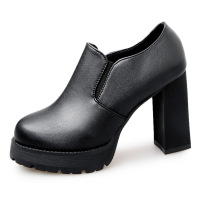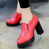 2017新款粗跟高跟单鞋女2017秋季新款欧美皮面时装靴百搭单靴短靴子女鞋潮