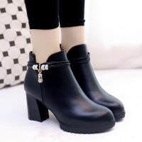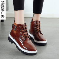 2017秋冬季新款加绒保暖皮靴马丁靴高跟圆头女靴粗跟短靴子女鞋子