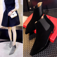 2017秋冬新款靴子尖头裸靴粗高跟马丁靴女大码单靴磨砂短靴子
