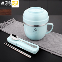 三维工匠不锈钢学生手提饭盒便当盒分格上班族带饭保温桶大容量多层餐盒 两层蓝色+餐具三件套+保温袋
