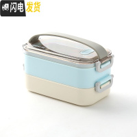三维工匠日式不锈钢饭盒便当盒成人学生食堂带盖简约韩国微波炉健身餐盒 北欧蓝双层1600