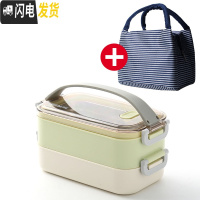 三维工匠日式不锈钢饭盒便当盒成人学生食堂带盖简约韩国微波炉健身餐盒 北欧蓝双层1600+保温袋
