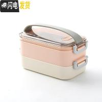三维工匠日式不锈钢饭盒便当盒成人学生食堂带盖简约韩国微波炉健身餐盒 北欧粉双层1600