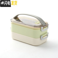 三维工匠日式不锈钢饭盒便当盒成人学生食堂带盖简约韩国微波炉健身餐盒 北欧绿双层1600