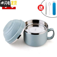 三维工匠304不锈钢保温饭盒便当盒学生成人带盖快餐杯泡面杯2双层韩国餐盒 北欧蓝[1900]+餐具