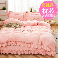 ins韩版公主风纯棉四件套全棉磨毛被套花边床单床裙1.5/1.8床套件