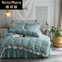 珊诗丽【新体验】简约公主风床上用品四件套纯棉条纹花边韩版全棉四件套床裙款1.5/1.8