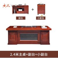 苏宁 质凡 办公桌老板桌组合实木皮大班台总裁桌2.4米主桌+副台+小柜
