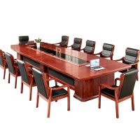 东升顺大型油漆会议桌实木黑玻璃长桌办公室桌椅组合工作台3.5*1.6米(红胡桃色)