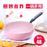 日式24cm粉麦饭石不粘锅炒锅深煎锅油炸锅煮汤锅平底锅电磁炉通用