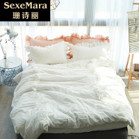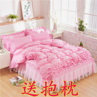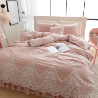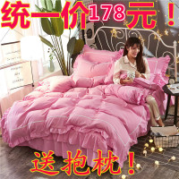 韩版蕾丝床裙式全棉四件套纯棉被套纯色花边公主风床罩1.5米/1.8m