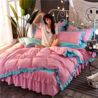 韩版公主风纯棉床裙床罩式四件套全棉纯色加厚磨毛被套1.5/1.8米