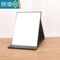 敬平高清折叠镜子化妆镜台式便携随身学生宿舍公主大号PU皮桌面梳妆镜 升级款黑细纹小号 镜面加大加厚便携式用镜