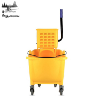 敬平带滑轮加厚塑料拖把桶洗澡桶挤水桶篮老式家用墩布拖把压干地拖桶 方形款橘色[带沥水篮+轮子]