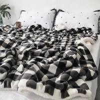 北欧风羊羔绒盖毯双人 黑白双层宝宝绒加厚毛毯单学生宿舍单人冬