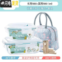 三维工匠玻璃碗便当盒保鲜带盖饭盒微波炉用分隔家用密封收纳碗上班族带饭 北欧绿分隔800+长700+火烈鸟包+小麦餐具