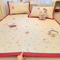 星星猫夏季卡通冰藤席三件套宿舍单人凉感冰丝席可机洗空调软席子_664