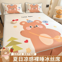 卡通小熊冰丝凉席三件套夏季空调软席学生宿舍单人可机洗凉感席子